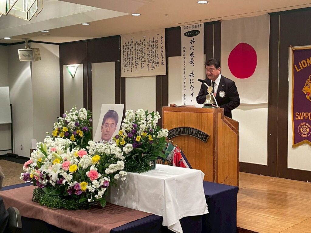 今回は当クラブメンバーのL谷口晃太郎が1月11日に死去されましたので追悼例会を行いました。2014年入会にて11年間札幌ポプラLCで長きにわたりこの会のために多大な尽力をしていただきました。会の発展のために熱心に活動されその功績は計り知れません。