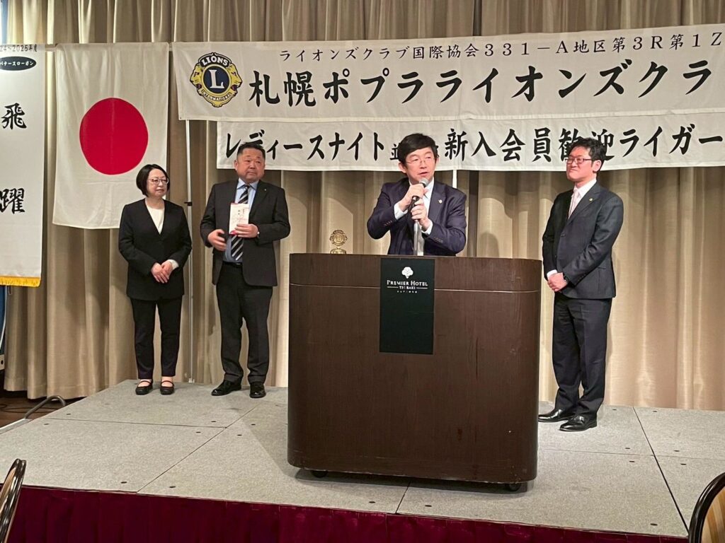 今回はゲストに美田ガバナー、地区MC委員長L大津知佳、札幌パイオニアLCL鈴木志保里にご出席いいただきました。第一部ではL佐藤圭介の還暦を全員でお祝いし、新入会員紹介ではL関亘、 L阿部、 L脇元、 L駒ヶ嶺の4名が入会いただきました。