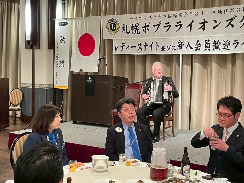 第二部ではL寺岡の司会進行で会場が和やかになり盛り上げてくれました。アトラクションとしてウクライナ出身でピアニストのオレクサンドル・ガブリロフさんにアコーディオン演奏していただきライオンレディーと共に楽しませてくれました。恒例のラッキーカード抽選会ではL鏡の司会により軽快なトークで会場を盛り上げてくれました