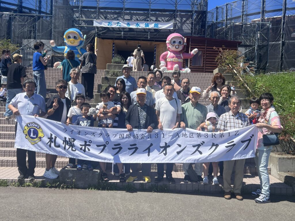 猛暑の中ライオンレディ,子供達と貸切バスで小樽水族館に行きました。何年振り?何十年振りの小樽水族館でライオンの皆さん目を輝かせて少年のような眼差しで魚たちを見てました。さぞかし癒されたことでしょう。その後例会、昼食会場となる小樽にあるニュー三幸本店で例会、昼食、ゲーム大会が行われました。